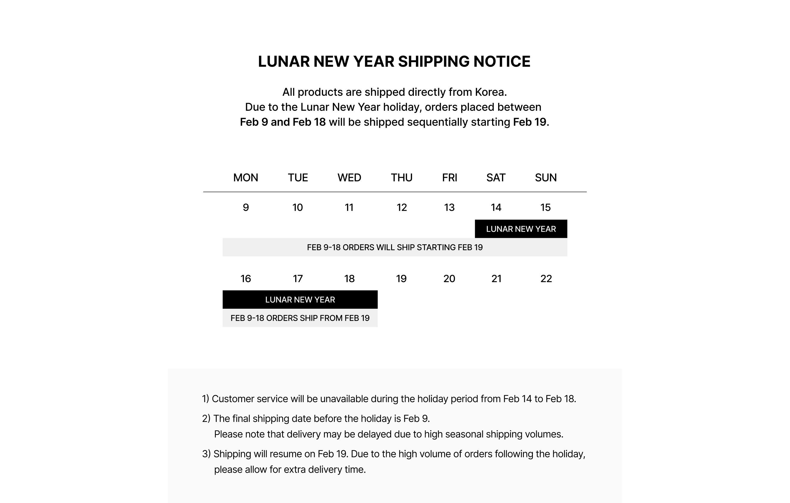Lunar New Year Shipping Notice
